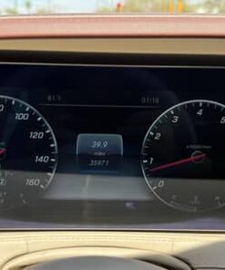 - According to the Monroney Label provided in the gallery, notable factory equipment includes the AMG Line Exterior Package, a panorama sunroof, Nappa leather upholstery, Designo Natural Grain Brown Ash wood trim, heated, ventilated, and power-adjustable front and rear seats, a Burmester surround sound system, and Apple CarPlay and Android Auto compatibility. Notable modifications reported by the selling dealer are limited to tinted windows.