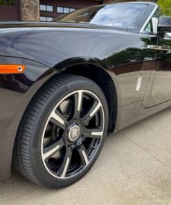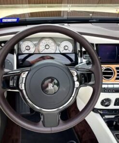 - Inspired by Music Package (woven leather floor mats, Canadel paneling on the doors, Collection clock, black soft top, black cashmere headliner, Inspired by Music light environment, Dark Spice piping on the seats, Dark Spice contrast stitching, Lyrical Copper fascia copper, Tudor Oak trim, Rolls-Royce Bespoke Audio sound system, Dark Spice Rolls-Royce monogram stitched into the headrests, “Inspired by Music” treadplates, full natural-grain leather upholstery, and Inspired by Music 21-inch wheel design)