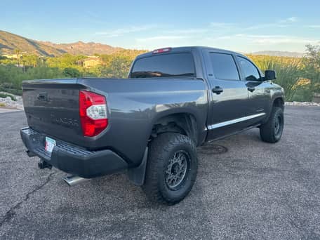- Notable modifications reported by the seller include a K&N cold-air intake, Borla cat-back exhaust, 18-inch Vision wheels, a 4-inch lift kit, and Amp Research power side steps.