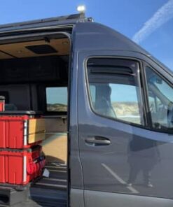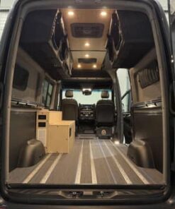- Modifications reported by the seller are extensive, and the full list is detailed below. Highlights include a Van Compass Stage 4.3 suspension system, an S&B 47-gallon fuel tank, a Mid City Engineering electronics suite, a Battle Born Batteries 600Ah lithium Ion battery bank with heater, AMF-Bruns of America SmartFloor with 6 L-track rails, Alpine Mechanisms swivel seats, MOAB Elevator Camper bed, an ICECO fridge, and a Dometic GO hydration water faucet.