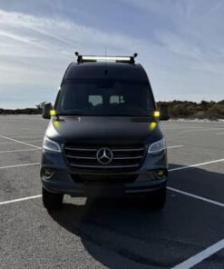 THIS… is a 2019 Mercedes-Benz Sprinter 2500 4×4, finished in Tenorite Grey Metallic with a black interior.
