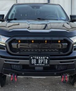 - Aftermarket Raptor-style front grille with amber lights