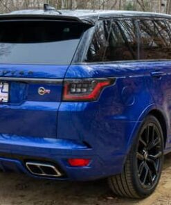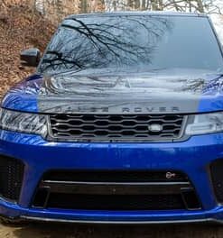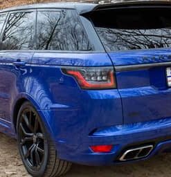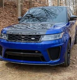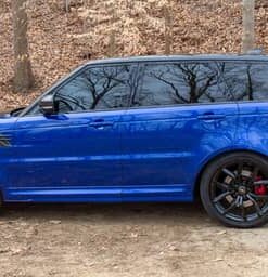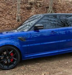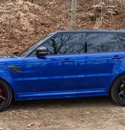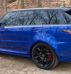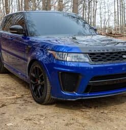 THIS… is a 2020 Range Rover Sport SVR, finished in Estoril Blue with an Ebony interior.