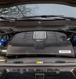 - Power comes from a 5.0-liter supercharged V8, rated at 575 horsepower and 516 lb-ft of torque. Output is sent to all four wheels via an 8-speed automatic transmission.