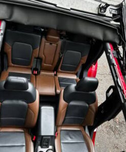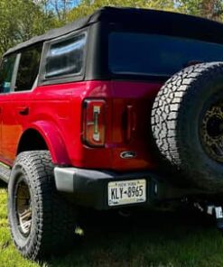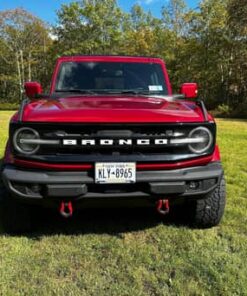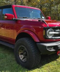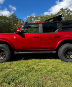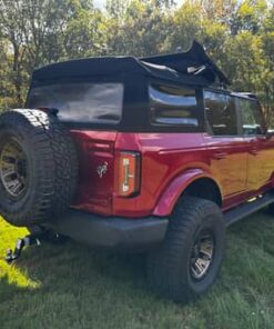 THIS… is a 2021 Ford Bronco Outer Banks, finished in Rapid Red Tinted Clearcoat with a black soft top and a Roast and Black interior.