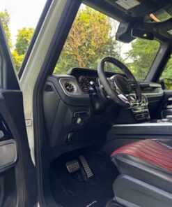 THIS… is a 2021 Mercedes-AMG G63, finished in Polar White with a Bengal Red and black interior.