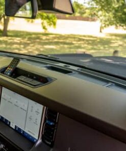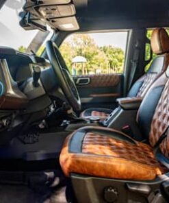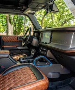 THIS… is a 2022 Ford Bronco Outer Banks, finished in Kevlar with a brown and black interior.