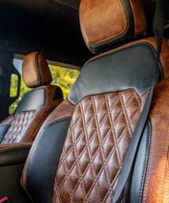 - Interior reupholstered in King Ranch-style brown and black marine-grade leather upholstery