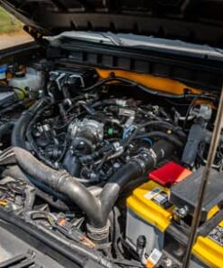 - Power comes from a 2.7-liter twin-turbocharged EcoBoost V6 engine, rated at 330 horsepower and 415 lb-ft of torque with premium fuel in stock trim. According to Apocalypse Manufacturing, the engine has been tuned to produce 400 horsepower, but a dyno sheet was not provided to verify. Output is sent to the rear four or all six wheels via a 10-speed automatic transmission and an Apocalypse Manufacturing middle tandem axle.