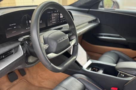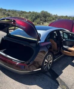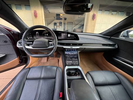 THIS… is a 2022 Lucid Air Grand Touring, finished in Zenith Red with a Tahoe interior.