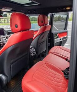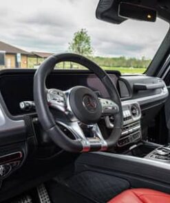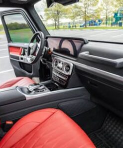 THIS… is a 2022 Mercedes-AMG G63, finished in Obsidian Black Metallic with a Classic Red and black interior.