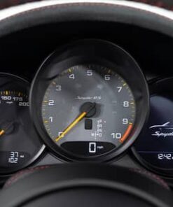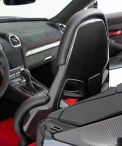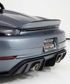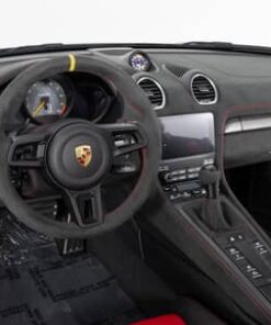 - Weissach Package (20-inch 718 Cayman RS forged magnesium wheels, carbon fiber front hood, carbon fiber door mirror upper trims, carbon fiber side cooling air intake trim, carbon fiber process air intakes, carbon fiber third brake light trim, carbon fiber roll-over bar trim, carbon fiber rear spoiler Gurney flap, titanium tailpipe trim, Race-Tex upper dashboard trim, embroidered “Weissach Package” logo on headrests)