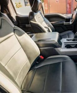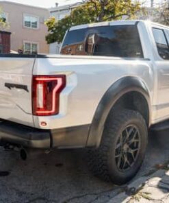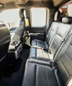 - According to a digital window sticker provided in the gallery, factory equipment on this F-150 includes a dual exhaust system, a 4.10 electronic lock rear axle, trailer sway control, a spray-in bedliner, a power-sliding rear window, leather upholstery, heated and power-adjustable front seats, shift paddles, and more as detailed below.
